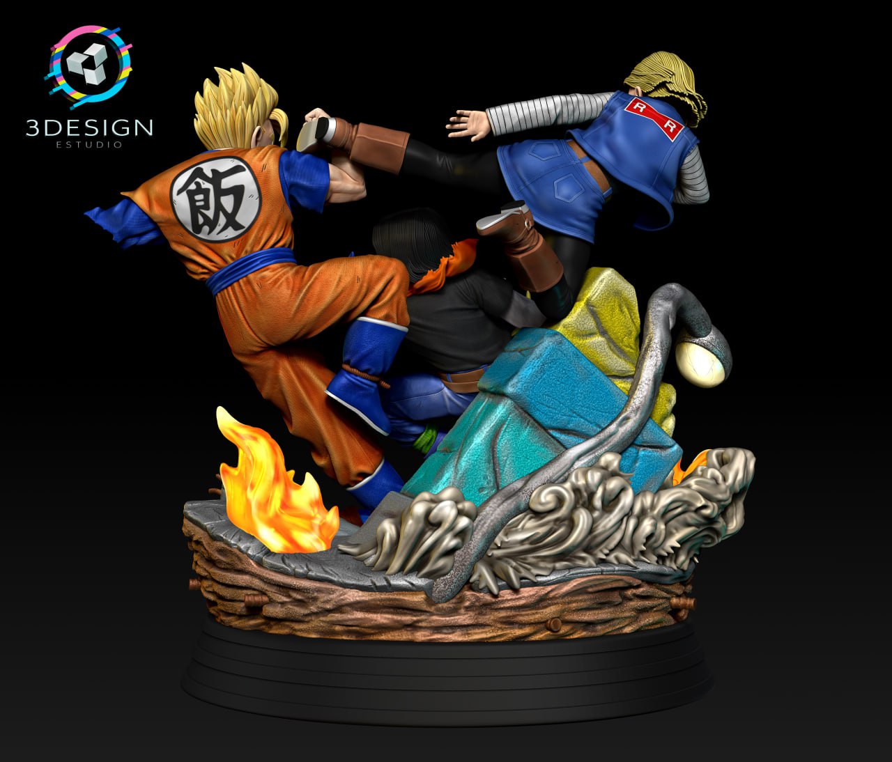 Future Gohan vs Androids 17 and 18